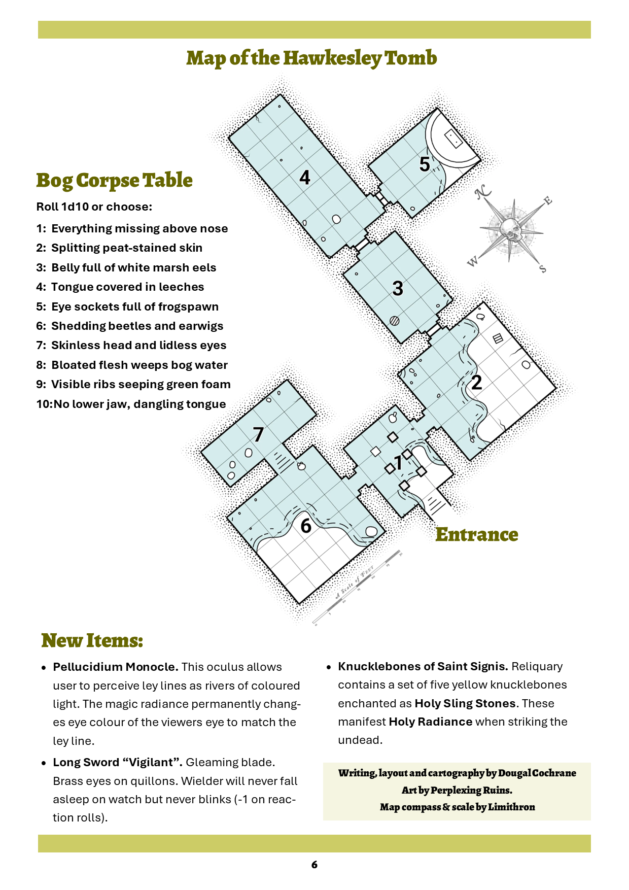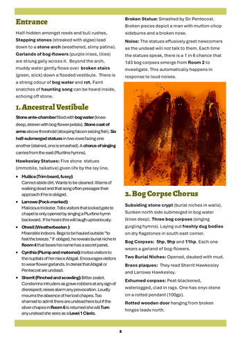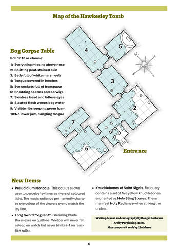 It has story hooks, interactive elements, unique treasures, a table of bog corpse features and some typical Dolmenwood fairytale strangeness.