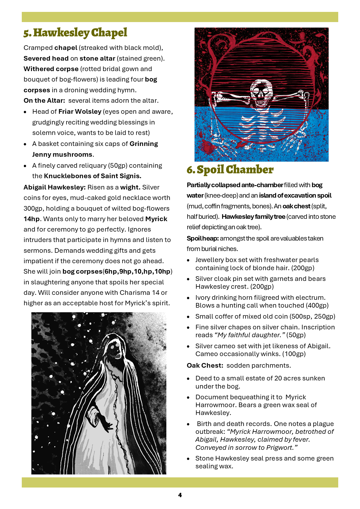 Abigail's Wedding is a six page monster lair for the Dolmenwood RPG by Necrotic Gnome.