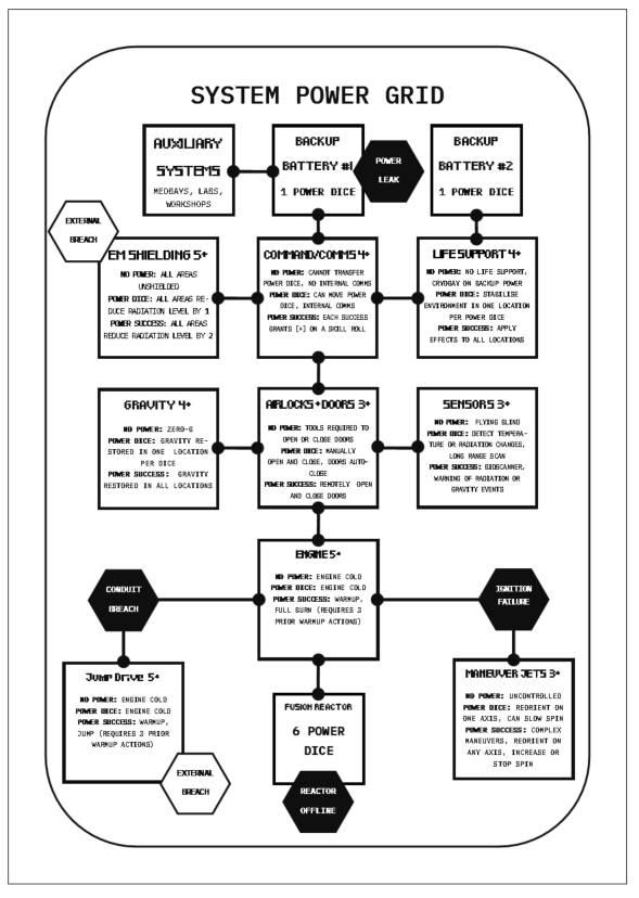 Includes procedures for tracking escalating crisis effects and for players to manipulate ships power to operate or overclock ship systems.